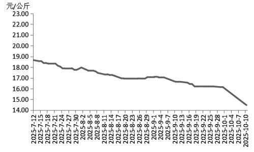 据农业农村部信息中心和山东卓创资讯股份有限公司联合监测,2025年第41周(即2025年10月9日-10月10日,以下简称本周),16省(直辖市)瘦肉型白条猪肉出厂价格总指数的周平均值为每公斤15.11元,环比下跌8.8%,同比下跌35.0%,较上周跌幅扩大5.7个百分点。