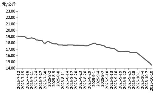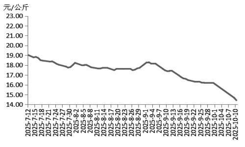 本周国内瘦肉型白条猪肉出厂价格(以下简称“猪肉价格”)环比明显下跌。规模养殖场和散养户出栏积极性下降,生猪及猪肉供应减少;国庆、中秋双节对猪肉消费的提振效应减弱,叠加部分地区持续降雨天气,猪肉消费明显减少,且消费降幅大于供应增幅,价格明显下跌。